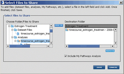 5. 공유할 파일을 더블클릭 or Add 버튼을 클릭하여 우측으로 파일을 넘깁니다.